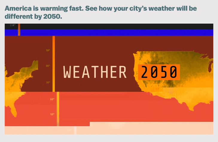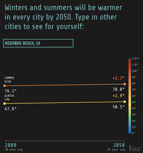 Vox takes an even deeper dive on their Weather 2050 site. Plug in your own city and see what climate change of address you’ll be experiencing.
